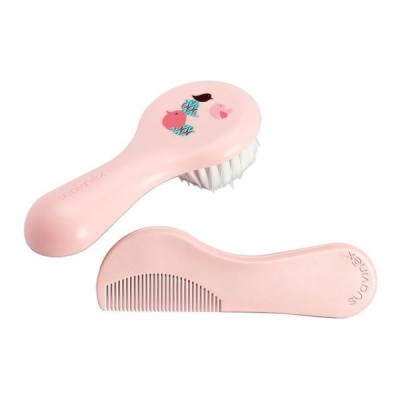 Este conjunto de cepillo y peine no tiene cantos vivos ni aristas peligrosas que puedan dañar al bebé. Las púas del peine tienen los extremos redondeados, y las fibras del cepillo tienen la suavidad y flexibilidad idónea para los cabellos del bebé, convirtiéndolo en el producto ideal para su aseo.