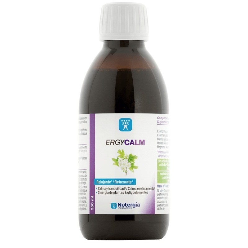 ERGYCALM combina el espino blanco, relajante y calmante, la bellota, que favorece la relajación, y la melisa, que favorece la relajación y el bienestar físico.