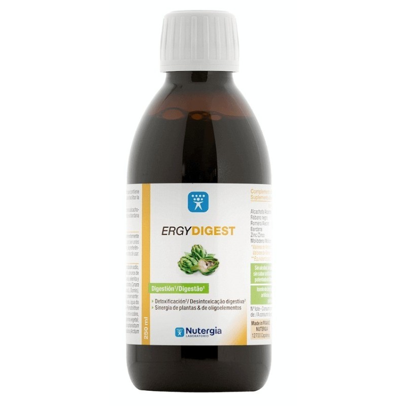 ERGYDIGEST es una combinación de oligoelementos y plantas, entre ellas la alcachofa, que ayuda a detoxificar, y el romero y la bardana, que ayudan a facilitar la digestión. Los oligoelementos, incluido el zinc, que interviene en el metabolismo de los azúcares, las grasas y las proteínas, completan la fórmula. El zinc y la bardana ayudan a mantener la piel sana.